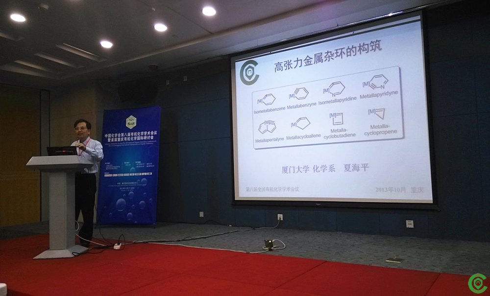 2013年10月17日至10月20日,中国化学会第八届有机化学学术会议在重庆召开。本次大会以“化学创新与社会可持续和谐发展”为主题,围绕天然产物化学、有机合成化学、物理有机化学、金属有机化学、元素有机化学、生物有机化学与化学生物学、超分子化学、有机分析化学、有机药物化学和有机材料化学等十个方面进行了深入广泛的讨论和交流。与会成员超过3000人。