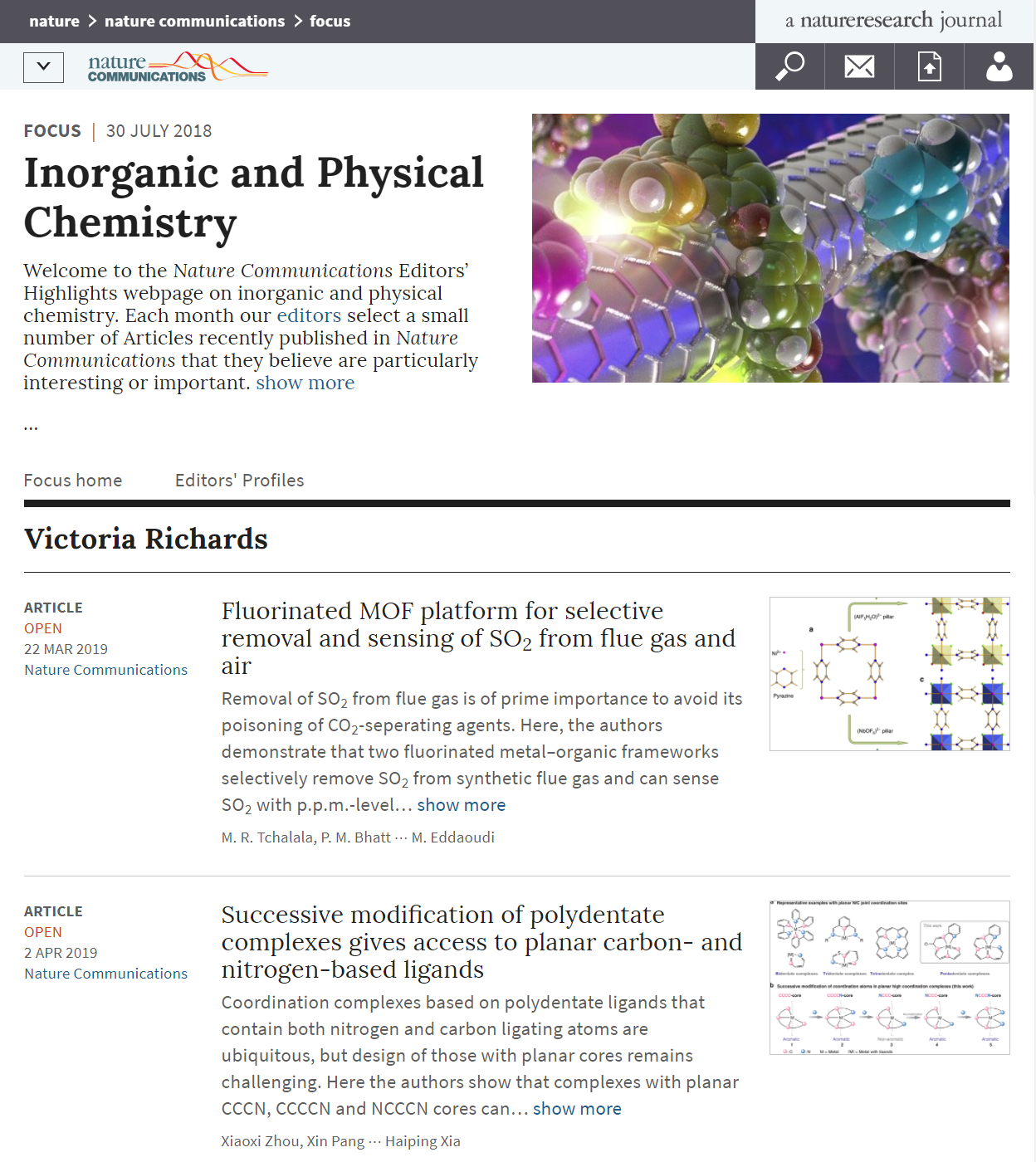 Each month editors of Nature Communications select a small number of Articles recently published in Nature Communications that they believe are particularly interesting or important in selected research areas. The aim is to provide a convenient snapshot of some of the most exciting work published in the selected research areas at Nature Communications.